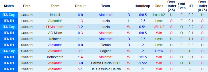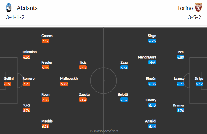 Trận đối đầu giai đoạn lượt đi Serie A mùa này, Atalanta đã thắng tưng bừng 4-2 ngay trên sân của Torino. 2 lần gần nhất chạm trán Torino, Atalanta xé lưới đối thủ tới 11 lần. Thành tích của Atalanta tại giải đấu số 1 Italia mùa này cũng vượt trội so với Torino.
