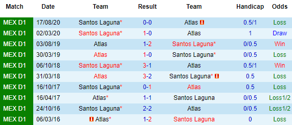 + Lịch sử đối đầu Atlas vs Santos Laguna