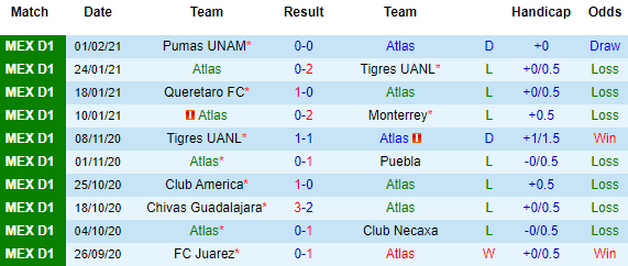 + Thống kê 10 trận gần nhất của Atlas