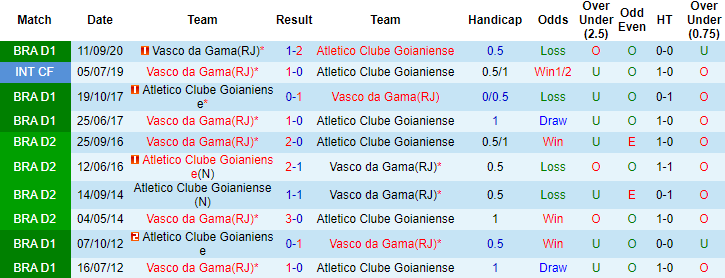 + Lịch sử đối đầu Atletico GO vs Vasco da Gama