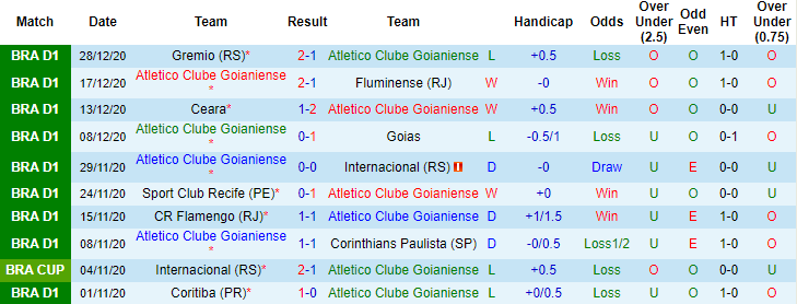 + Thống kê 10 trận gần nhất của Atletico GO