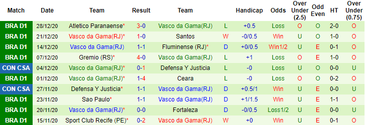 + Thống kê 10 trận gần nhất của Vasco da Gama