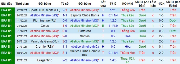 + Thống kê 10 trận gần nhất của Atlético Mineiro