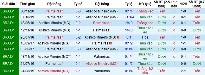 + Lịch sử đối đầu Atlético Mineiro vs Palmeiras