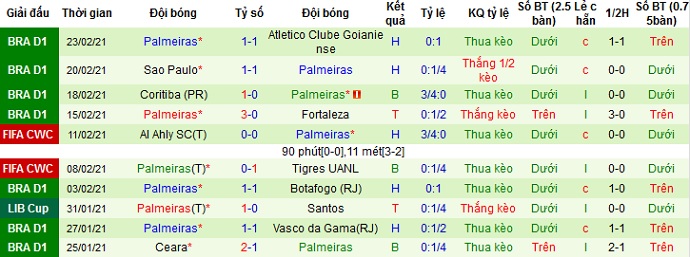 + Thống kê 10 trận gần nhất của Palmeiras