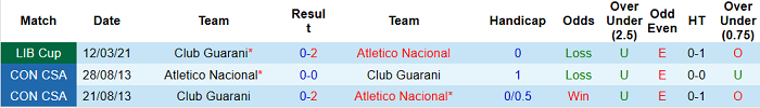 Cả 3 lần đối đầu trước đây trước Atletico Nacional và Guarani đều không xuất hiện quá 2 bàn thắng. Kịch bản tương tự hứa hẹn tái diễn vào thứ Bảy (19/3) theo giờ Việt Nam.