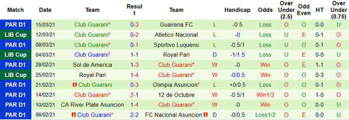 - Thống kê 10 trận gần nhất của Guarani