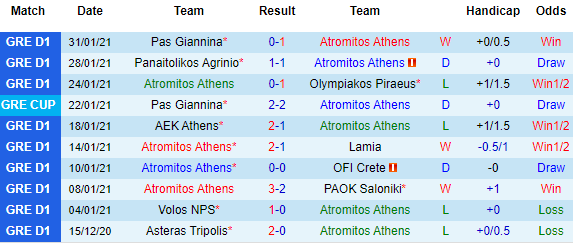 + Lịch sử đối đầu Atromitos vs PAS Giannina