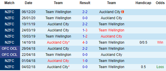 + Lịch sử đối đầu Auckland City vs Team Wellington
