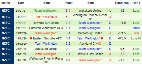 + Thống kê 10 trận gần nhất của Team Wellington
