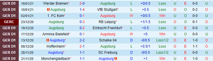 + Thống kê 10 trận gần nhất của Augsburg