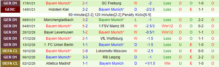 + Thống kê 10 trận gần nhất của Bayern Munich