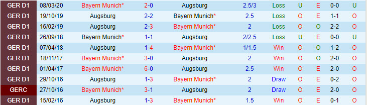 Phong độ và thống kê đối đầu Augsburg - Bayern Munich gần đây: