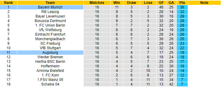Với những kết quả kể trên, giới đầu tư có phần dè chừng khi gửi gắm niềm tin vào Augsburg ở lượt trận giữa tuần này tại vòng 17 giải VĐQG Đức. Mọi thứ càng thêm khó đoán khi đây là trận đấu Hùm xám gặp bất lợi khi phải thi đấu xa nhà.