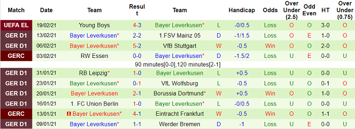 Những kết quả của Leverkusen kể từ nửa sau tháng 12/2020 không thật sự ấn tượng. Họ không thắng 7/9 trận gần nhất thuộc khuôn khổ Bundesliga và nhận tới 5 thất bại. Thành tích này kém hơn hẳn so với việc thắng 8/9 trận trước đó tại sân chơi số 1 trong Hệ thống thi đấu bóng đá chuyên nghiệp Đức.