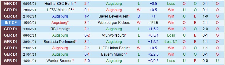 + Thống kê 10 trận gần nhất của Augsburg