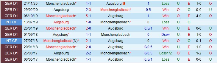 Phong độ và thống kê đối đầu Augsburg - M'gladbach gần đây:
