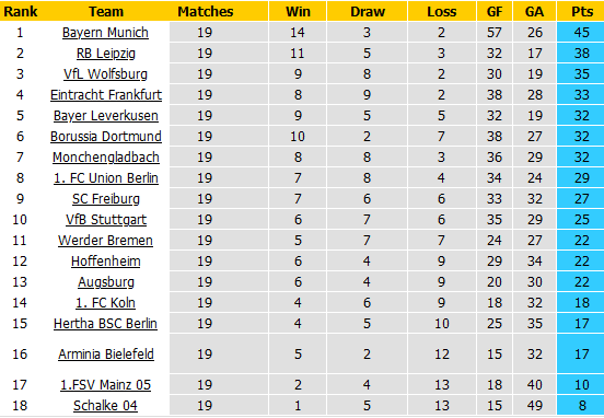 Từ đầu mùa, Wolfsburg mới 2 lần bị đánh bại, còn lại có 9 chiến thắng và 8 trận hòa là chi tiết cho thấy sự ổn định ở mức cao và thành tích tiến bộ trông thấy so với mùa giải năm ngoái của họ.