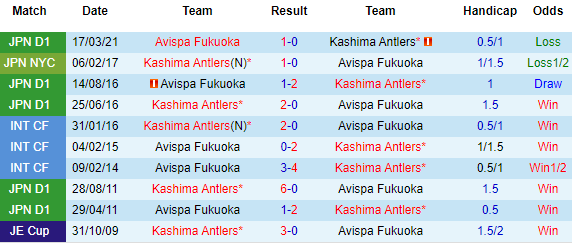+ Lịch sử đối đầu Avispa Fukuoka vs Kashima Antlers