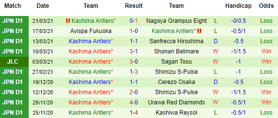 + Thống kê 10 trận gần nhất của Kashima Antlers