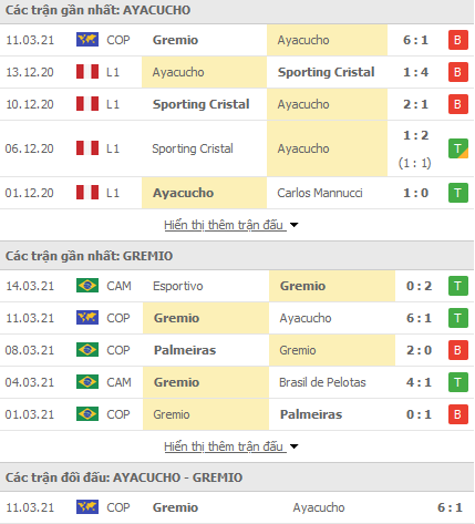 Phong độ và thống kê đối đầu gần đây Ayacucho vs Gremio: