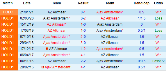 + Lịch sử đối đầu AZ Alkmaar vs Ajax