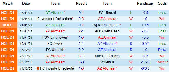 Tuy nhiên, thất bại trước Utrecht mới đây phơi bày nhiều yếu điểm của AZ Alkmaar. Những ai theo dõi trận cầu đó đều thấy rằng AZ Alkmaar tấn công thiếu sáng tạo dù cầm bóng nhiều hơn đối phương. Dẫu sao thì thứ hạng trong top 7 cũng hoàn toàn khả thi với AZ Alkmaar.
