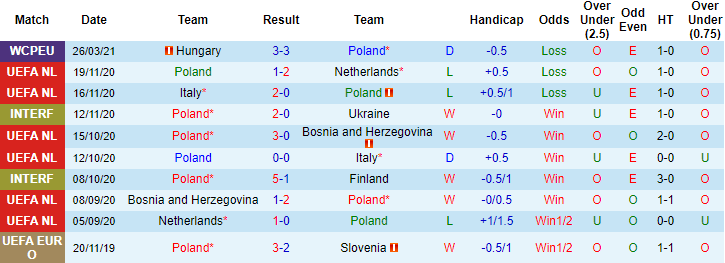 + Thống kê 10 trận gần nhất của Ba Lan