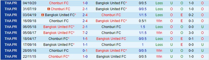 Phong độ và thống kê đối đầu Bangkok United - Chonburi gần đây: