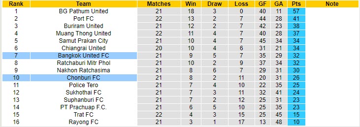 Cần nhớ, đây là trận đấu Bangkok United được chơi trên sân nhà và đối thủ Chonburi đang có dấu hiệu sa sút về phong độ lẫn tinh thần thi đấu. Bằng chứng, Chonburi chỉ có được 1 trận thắng, còn lại là 1 trận hòa và 3 thất bại ở 5 trận gần đây tại giải VĐQG. Tính từ đầu mùa tới giờ, họ có được 8 trận thắng, hòa 2 và nhận tới 11 thất bại, qua đứng ở vị trí thứ 10 trên BXH.