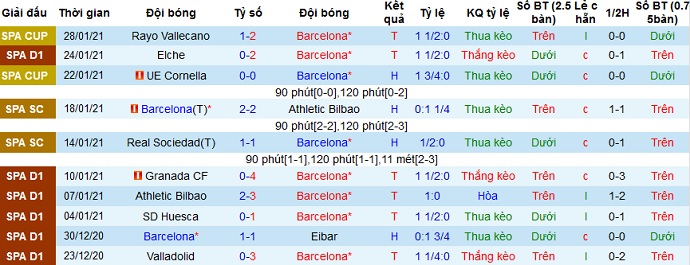 Trận thua trước Athletic Bilbao cũng là trận thua duy nhất của Barcelona trong 13 trận gần đây. Ngoài ra ở 8 trận gần nhất Barcelona có tới 7 trận thắng. Tuy nhiên trên sân nhà Nou Camp, Barcelona lại chỉ thắng 2 và để hòa 2 trong 4 trận gần nhất.