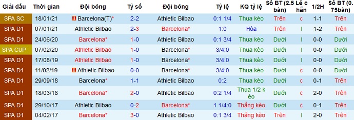 Tuy nhiên lần gần nhất Barcelona thắng cách biệt nhiều hơn 1 bàn trước Athletic Bilbao cũng đã cách đây gần 3 năm và kể từ đó đến nay 2 đội đã gặp nhau thêm 7 lần nữa. Thế nên cho dù Barcelona rất muốn phục thù trận thua mới đây nhưng với phong độ cũng rất tốt của Athletic Bilbao, chọn cửa dưới vẫn hơp lý hơn cả.