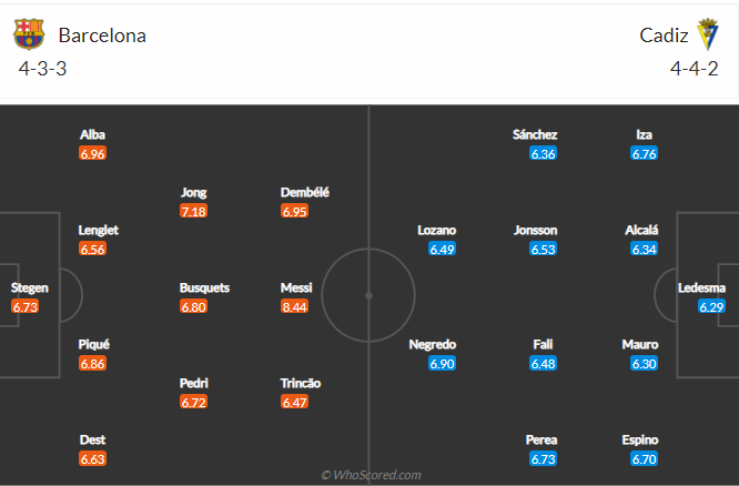 Phong độ và thống kê đối đầu Barcelona vs Cadiz