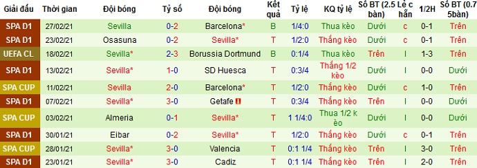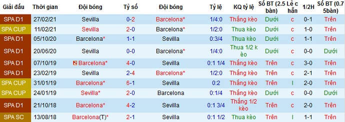 + Lịch sử đối đầu Barcelona vs Sevilla