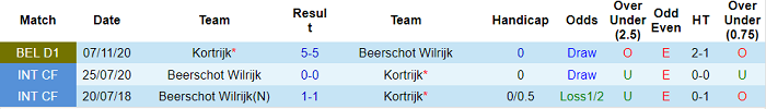 Đây đã là trận hòa thứ 3 liên tiếp trên mọi đấu trường giữa Beerschot Wilrijk và Kortrijk. Chính xác hơn, hai đội toàn hòa nhau ở cả 3 lần so tài trước đây.