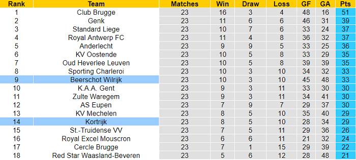 Ở trận lượt đi diễn ra hồi tháng 11/2020, Beerschot Wilrijk và Kortrijk đã tạo nên một màn so tài thực sự ‘mãn nhãn’. Hai đội thực hiện tổng cộng 10 pha lập công và mỗi bên có được 1 điểm sau tiếng còi mãn cuộc.