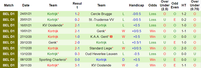 - Thống kê 10 trận gần nhất của Kortrijk