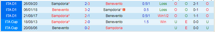 Phong độ và thống kê đối đầu Benevento - Sampdoria gần đây: