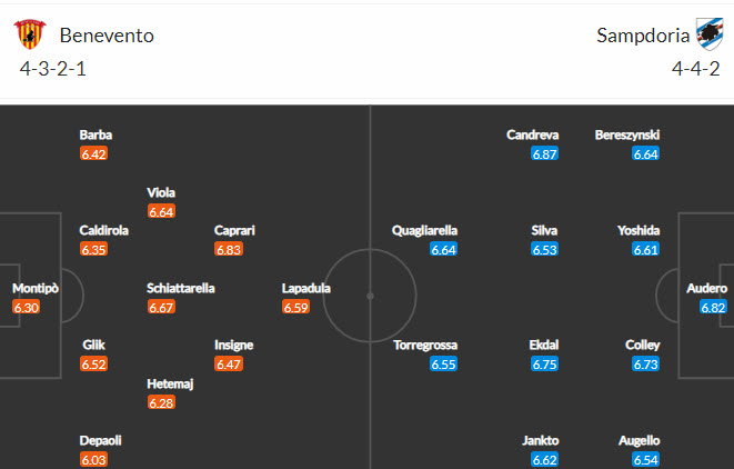 Đội hình dự kiến Benevento vs Sampdoria: