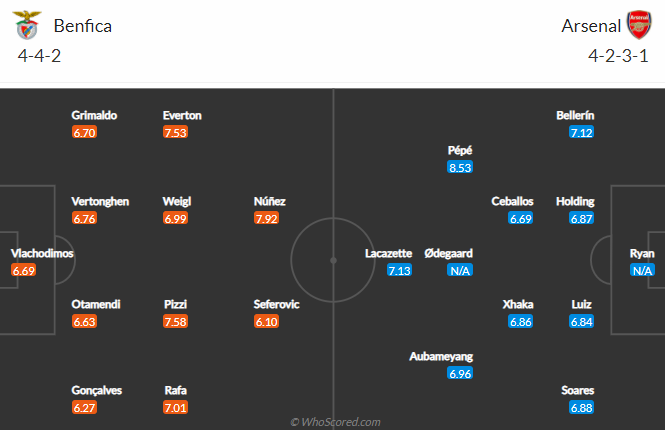 Đội hình dự kiến Benfica vs Arsenal