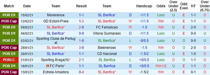 + Thống kê 10 trận gần nhất của Benfica