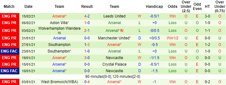 Bên phía đối diện, Arsenal thi đấu phập phù giai đoạn gần đây. 4 trận vừa qua Pháo thủ thành London để mất điiểm tới 3 lần (thua 2, hòa 1). Trên sân khách, đoàn quân của HLV Mikel Arteta bị đánh bại 3 trên 4 trận gần đây cả về tỷ số và kèo châu Á.