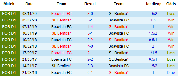 + Lịch sử đối đầu Benfica vs Boavista