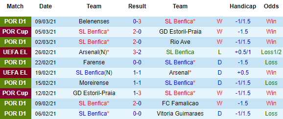 + Thống kê 10 trận gần nhất của Benfica