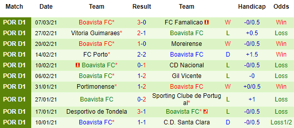 + Thống kê 10 trận gần nhất của Boavista