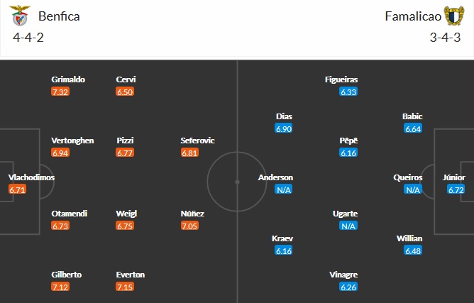 Đội hình dự kiến Benfica vs Famalicão