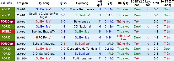+ Thống kê 10 trận gần nhất của Benfica