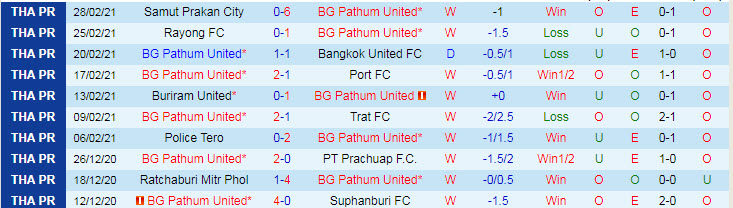 + Thống kê 10 trận gần nhất của BG Pathum