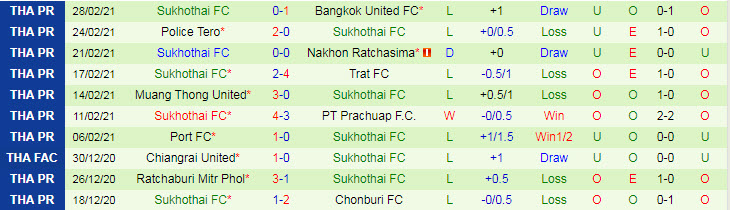 + Thống kê 10 trận gần nhất của Sukhothai