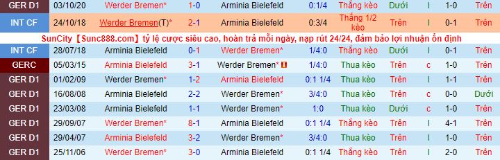 + Lịch sử đối đầu Bielefeld vs Werder Bremen
